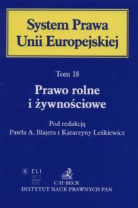 Prawo rolne i żywnościowe, red. Paweł A. Blajer, Katarzyna Leśkiewicz ; aut.: Jerzy Bieluk, Paweł A. Blajer, Paweł Czechowski, Jarosław Dobkowski, Paweł Gała, Justyna Goździewicz-Biechońska, Beata Jeżyńska, Alina Jurcewicz, Anna Kapała, Monika A. Król, Katarzyna Leśkiewicz, Izabela Lipińska, Przemysław Litwiniuk, Monika Łata, Dorota Łobos-Kotowska, Aneta Makowiec, Konrad D. Marciniuk, Adam Niewiadomski, Joanna Ostapiuk, Paweł Popardowski, Janusz Roszkiewicz, Krzysztof Różański, Łukasz Mikołaj Sokołowski, Marcin Sokołowski, Tomasz Srogosz, Marek Stańko, Aneta Suchoń, Agnieszka Szymecka-Wesołowska, Olga Śniadach, Maciej Taczanowski, Beata Włodarczyk, Paweł Wojciechowki, Katarzyna Wolnicka. Warszawa : Wydawnictwo C.H. Beck : Instytut Nauk Prawnych PAN, 2026.